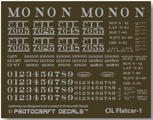 Note: for 1950 MONON lettering scheme, see Protocraft Decals CIL Flatcar-2