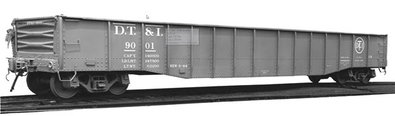 ![]() In June 1944, the DT&I (a subsidiary of the PRR) received from the Greenville Steel Car Company, under Office Order O.O.420, 100 of the “Greenville” gondolas, virtual clones of the original 52’-6” A.M.C design of the 70-Ton Drop-End Mill Gondola cars for the ERIE gondola produced in 1940. The DT&I’s list of materials included the standard Dreadnaught Ends, Wine Door locks, Wood plank floor, Universal Lever hand brakes, and virtually no tie-downs except the standard 1-1/4” chamfered holes along the top chord for ropes or cables. The cars rode on 70-ton trucks with a PRR coil-eliptical spring arrangement with a wheelbase of 5’-8”; and were assigned road numbers as Series 9000-9099. Cars were painted freight car red/brown with all white stencil paste lettering. The model built by Boo Rim Precision of Korea, runs on trucks with ball bearings, working journal covers, with full brake detail and is fully equalized and prepainted. It is equipped with a scale working draft gear assembly with a blackened scale working magnetic “E” type couplers. Working end doors have a scale Wine door lock assembly comprised of 5 individual castings Decals for this car are available from Protocraft Decals Be sure to specify either O scale or Proto:48 ![]() ![]() |