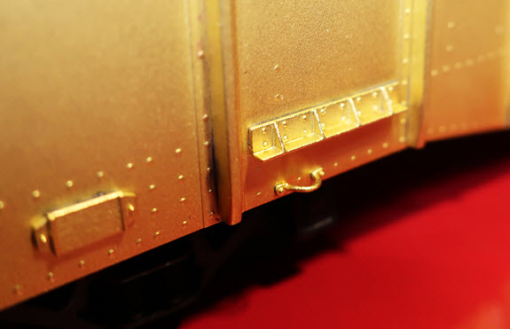 ![]() The C&O obtained ownership of 100 “Greenville Gondolas” in 1947 * when the PM was bought by the C&O. However repainting and relettering of these cars did not begin to take place until the early 1960’s when the cars needed repainting. Series numbers remained the same, with the C&O only adding a ‘2’ in front of the PM Series numbers - so the new C&O Series became 218850-218949. The cars came equipped with standard Dreadnaught ends, Wine Door locks, Universal Lever hand brake over and Apex brake step, 1-3/8” hardwood plank floors and roping staples mounted horizontally above the trucks. Interior hold downs were 28 folding stake pockets and the usual 1-1/4” chamfered rope/cable holes in the top rail. The C&O modified these cars for auto frame service by welding an angle iron bracket on each of the cars four corners to hold their method of securing the auto frames. Later when no longer in auto frame service the cars went to general freight service but the brackets remained intact. *In 1944, the Pere Marquette Railroad received 100 of the ‘clone’ A.M.C. design “Greenville Gondolas” built by Greenville Steel Car Company, under O.O. 420. These were assigned road numbers as Series 18850-18949. Decals are available for this car from Protocraft Decals ![]() ![]() ![]() |