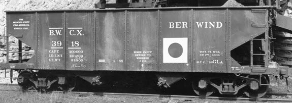 The Berwin-White Coal Company was formed in 1886 by Edward and Charles Berwind with Congressman Allison White. The Berwind Corporation, a large privately held company, was one of the largest coal producers in the country at the turn of the century located in the New River Coaleld, and created towns such as Windbar, PA and Berwind, WV. The company owned over 1,500 hopper cars mostly built by Cambria Steel Company and Pressed Steel Car Company, between 1901 and 1913. In 1940, and later 1949, Berwind Shops built an additional 450 50-ton hoppers of the same design. Many built in 1902-05 were rebuilt in 1949 at Berwind shops and renumbered into 5000-5190 series. By 1950, the cars began to be transferred to the PRR, and by 1964, all went to the PRR, with reporting marks dropping the X.