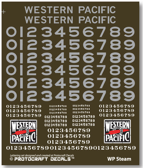 Previous Return to list of all Steam Locomotive decals in 1:48 scale lettering for Western Pacific’s aluminum steam lettering - 1930-1955